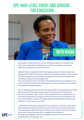 Biography of Ruth Kagia, GPE High-Level Envoy and Advisor for Education.