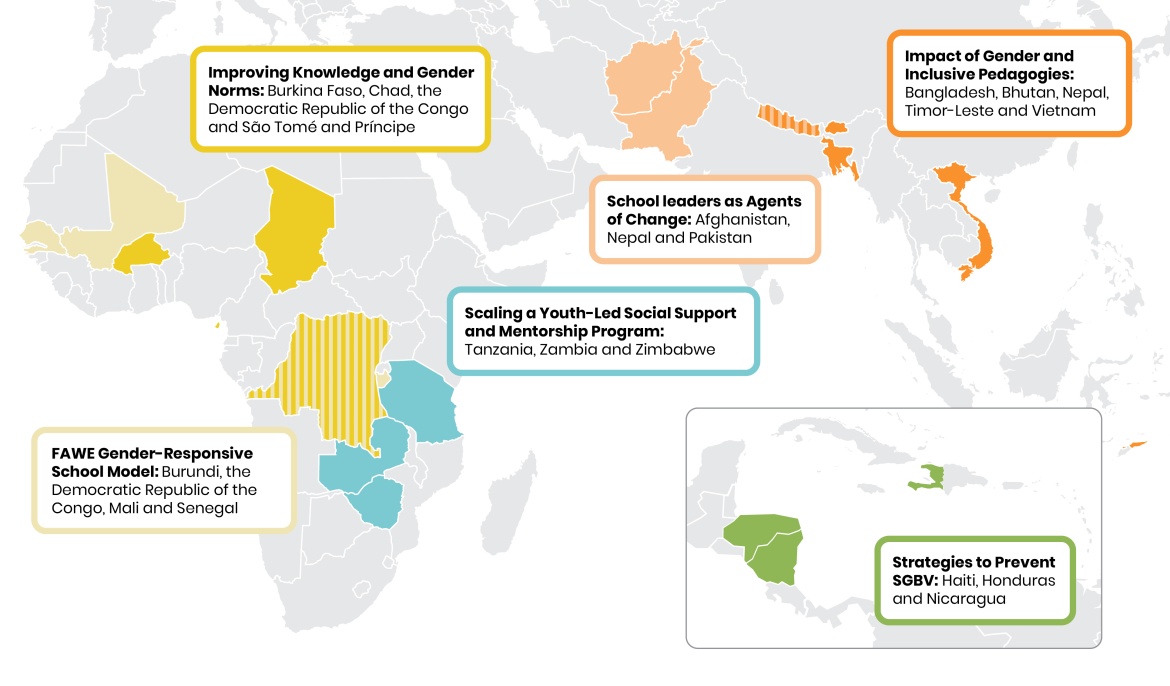 The focus of the GPE KIX projects was testing and adapting gender-responsive school models to address knowledge gaps on the process of scaling them. School models included gender and inclusive pedagogies; networked improved communities with school leaders; gender-based violence prevention practices; and mentorship programs for marginalized girls.