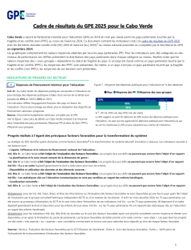 Ce document présente les dernières données tirées du Cadre de résultats du GPE 2025 pour le Cabo Verde, compilées par le Secrétariat du GPE au mois de septembre 2024.